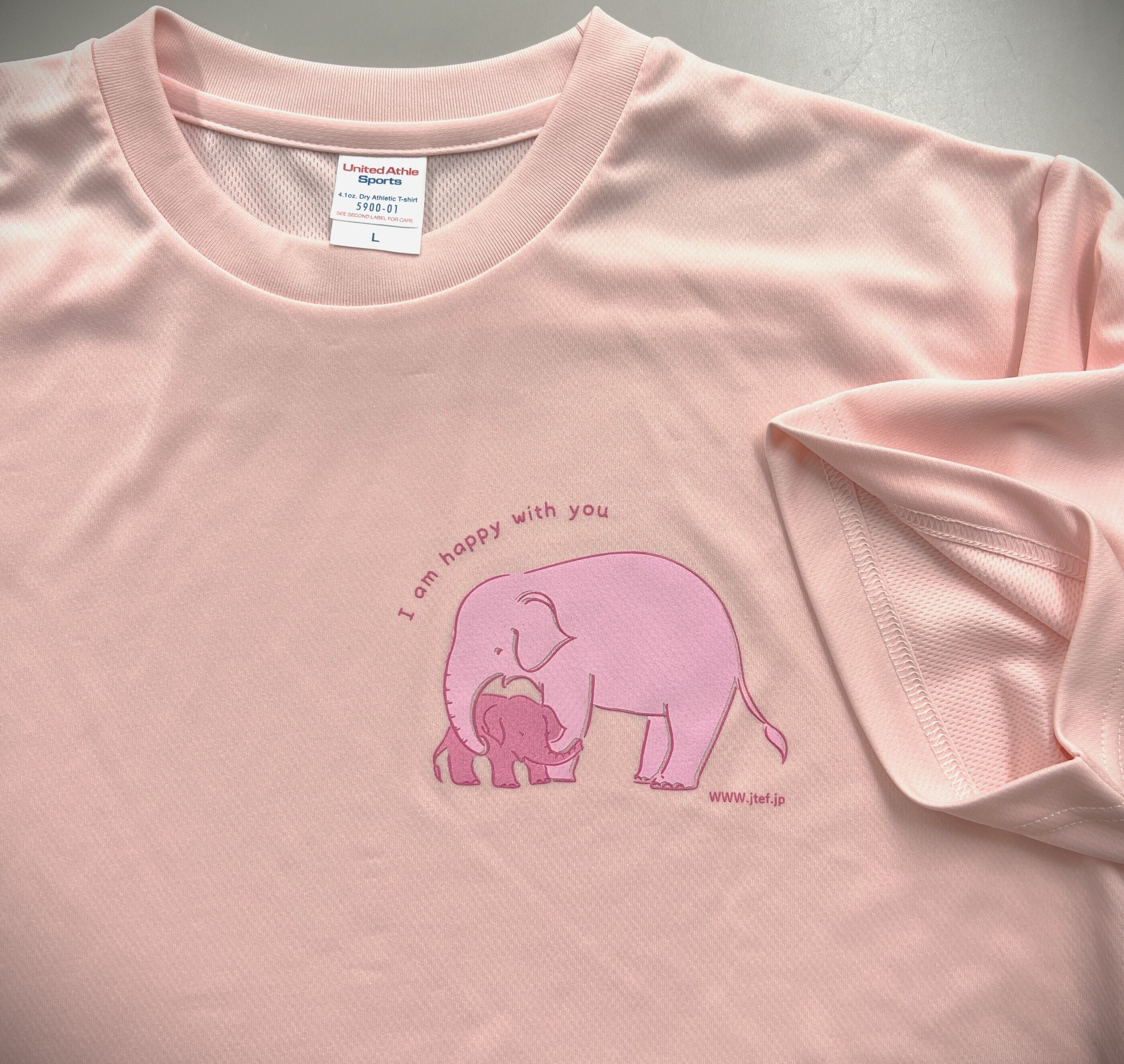 母ゾウが子ゾウを慈しむ 姿と"I'm Happy With You"をイメージにするとの想いでTシャツに作ってみました。